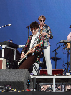 Speculation rippled across Twitter the night before suggesting that Fender was about to release previously Record Store Day vinyl exclusive track, 'Alright,' on all streaming services (which ended up being true). "This is one of my favourites; it's called 'Alright'" - Fender explained as the crowd erupted for the track's first-ever live outing. Other surprises of the night came from 'Play God' returning to the setlist for the first time in months, as well as a last-minute addition of live rarity, 'Angel In Lothian' (a song from the deluxe release of Fender's sophomore record, which had only been played three times previously and only during the Scottish leg of the tour) during the encore. Under a sky of deep blue shades, the penultimate track preceding the imminent encore (which Fender expressed his discontent for) was the heart-wrenching, goosebump-inducing, second album closer The Dying Light, a stunning piano ballad that builds into a spectacular anthem. On the emotionally charged lyrics on the song's break ("I must repel the dying light/For mum and dad and all my pals/For all the ones who didn't make the night"), gold fireworks were launched from either side of the stage, lighting up the sky above, whilst blue confetti was projected from cannons onstage, fluttering down onto the crowd below. Every emotion I felt upon first listening to the track a year prior came back in floods as my body reacted with shivers, despite the above-thirty-degree heat.